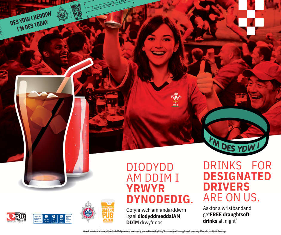 The South Wales Police initiative allows anyone who abstains to take to the wheel on a night out to receive free or discounted soft drinks from certain venues.